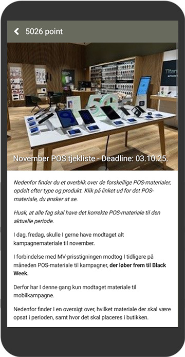 ”We have used Plus Club since 1/11 2016 to all our sellers in the YouSee stores. The system works well and we can see great results when we run competitions.The sellers are extremely satisfied with the app - it’s simple and intuitive. In the future, we will develop more features in cooperation with Plus Club.”